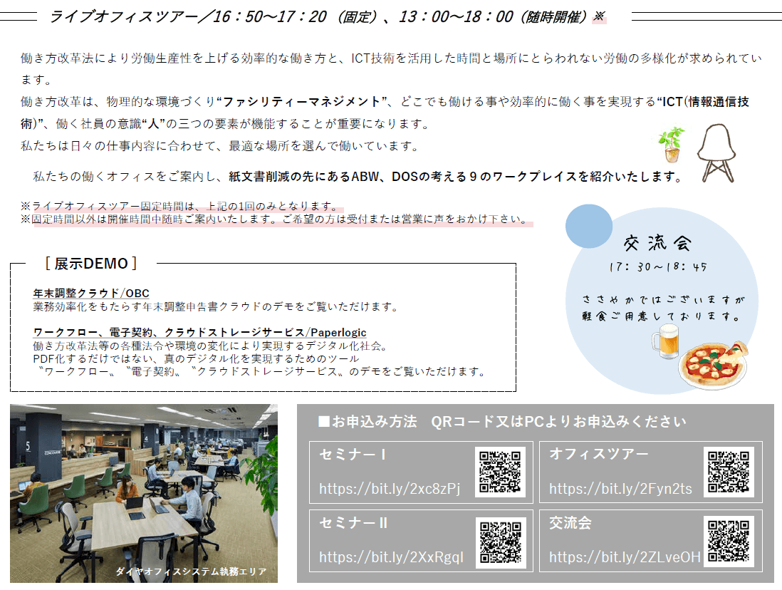 横山のセミナーは、セミナーⅡ(15時30分~16時40分)の「beyond paperless〜紙、本当に減らせてますか?」となります。他セミナープログラムの詳細は、ダイヤオフィスシステムのホームページにてご確認ください。